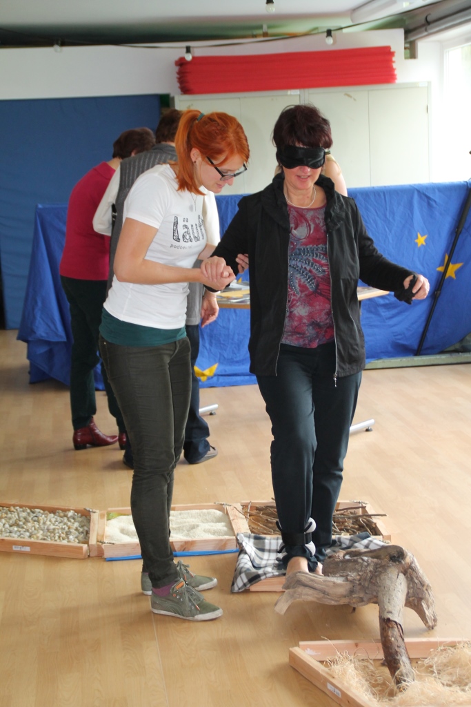 Auch der Fühlparcours war wieder Anlaufpunkt für mutige Füße! Pastorin Pfannschmidt, die den Gottesdienst leitete, fasste ein Grundproblem der von Podo Betroffenen treffend zusammen: „Natürlich ist es schwer diese Krankheit zu behandeln, auch wenn es ‘nur’ ums tägliche Füße Waschen geht. Es ist immer leichter einfach eine Pille gegen eine Krankheit zu schlucken – aber diese Leute müssen lernen ihr Verhalten zu ändern.“