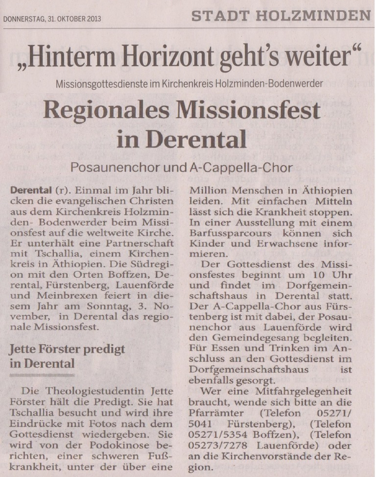 Ein Artikel aus einer Lokalzeitung zum Missionsfest:
